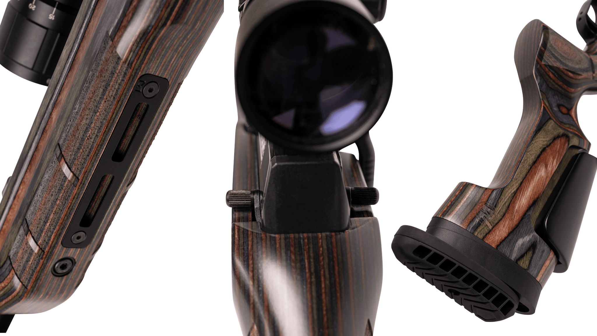 New cushioning ventilated butt pad Ambidextrous safety levers that sit in both sides of the new unique laminate Sporter stock design.