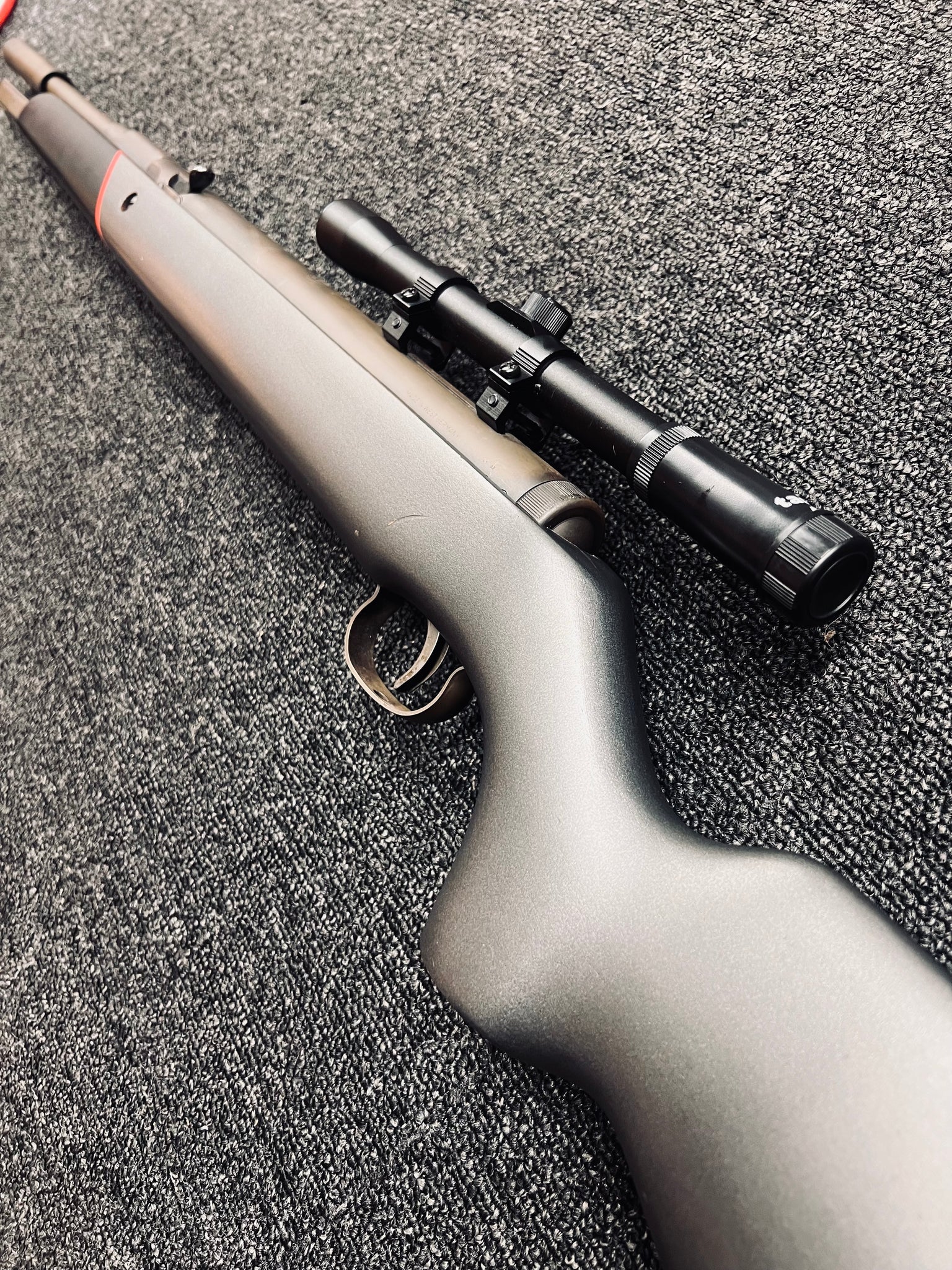 • Stock shows cosmetic marks including buttpad edge wear and a visible scratch on the right rear (see photos)
