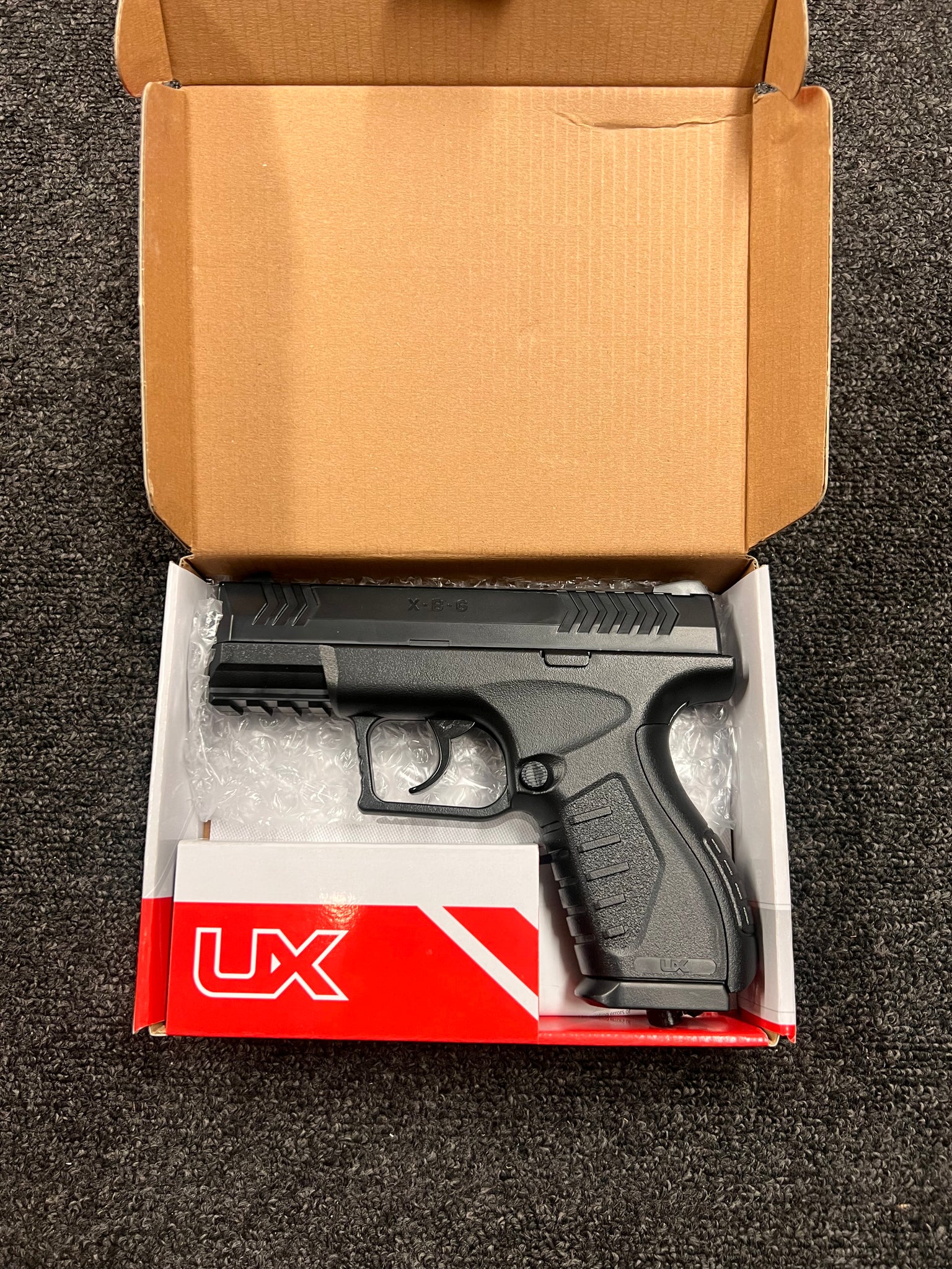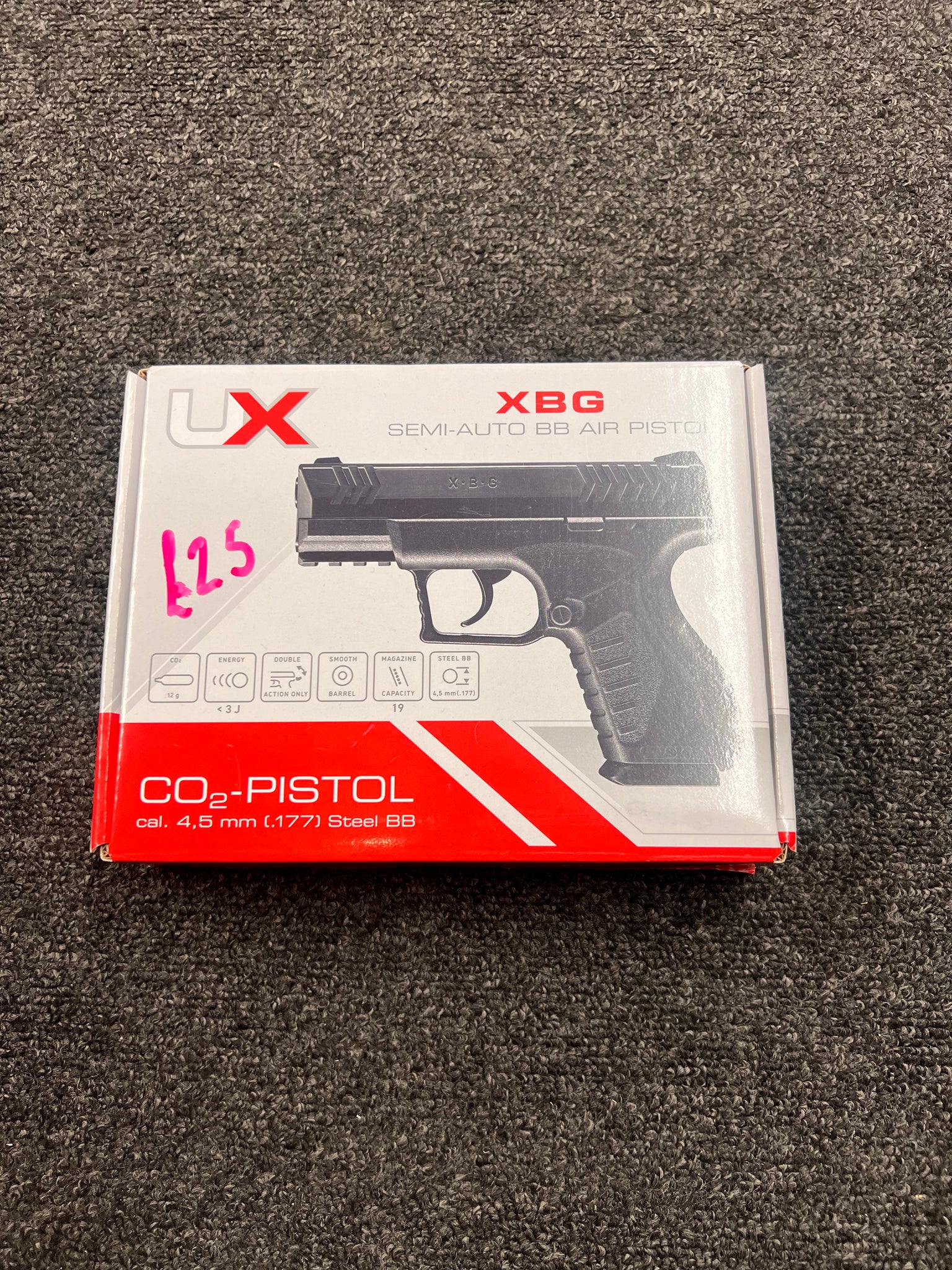 Pre-owned, very clean. 4.5mm steel BB CO2 air pistol.